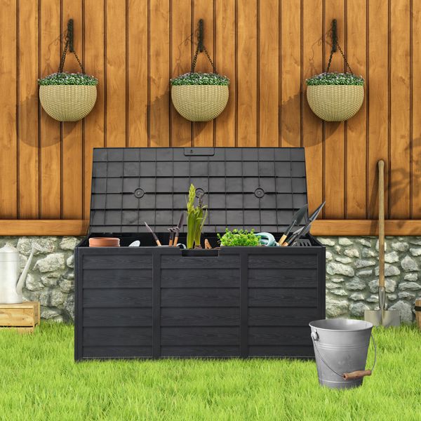 Do you want a great storage solution for your garden or garage? An instant solution for outdoor storage allowing you to store, cushions, tools, toys, garden equipment and other items safe, secure and dry for a clutter-free garden. An ideal outdoor addition to any garden for those who like their storage solutions both elegant and practical. Our storage box is built out of a low maintenance durable plastic to keep items such as patio accessories and chair cushions dry and ventilated as well as provide full weather resistance.This box is an ideal storage solution for your garden essentials such as garden tools, cushions, outdoor toys etc. Easy to assemble with no tools required, it is manufactured from a durable weather-resistant plastic construction which is UV resistant & has moulded side handles for easy portability. It is also lockable with an integral padlock hasp for added security (padlock not included).