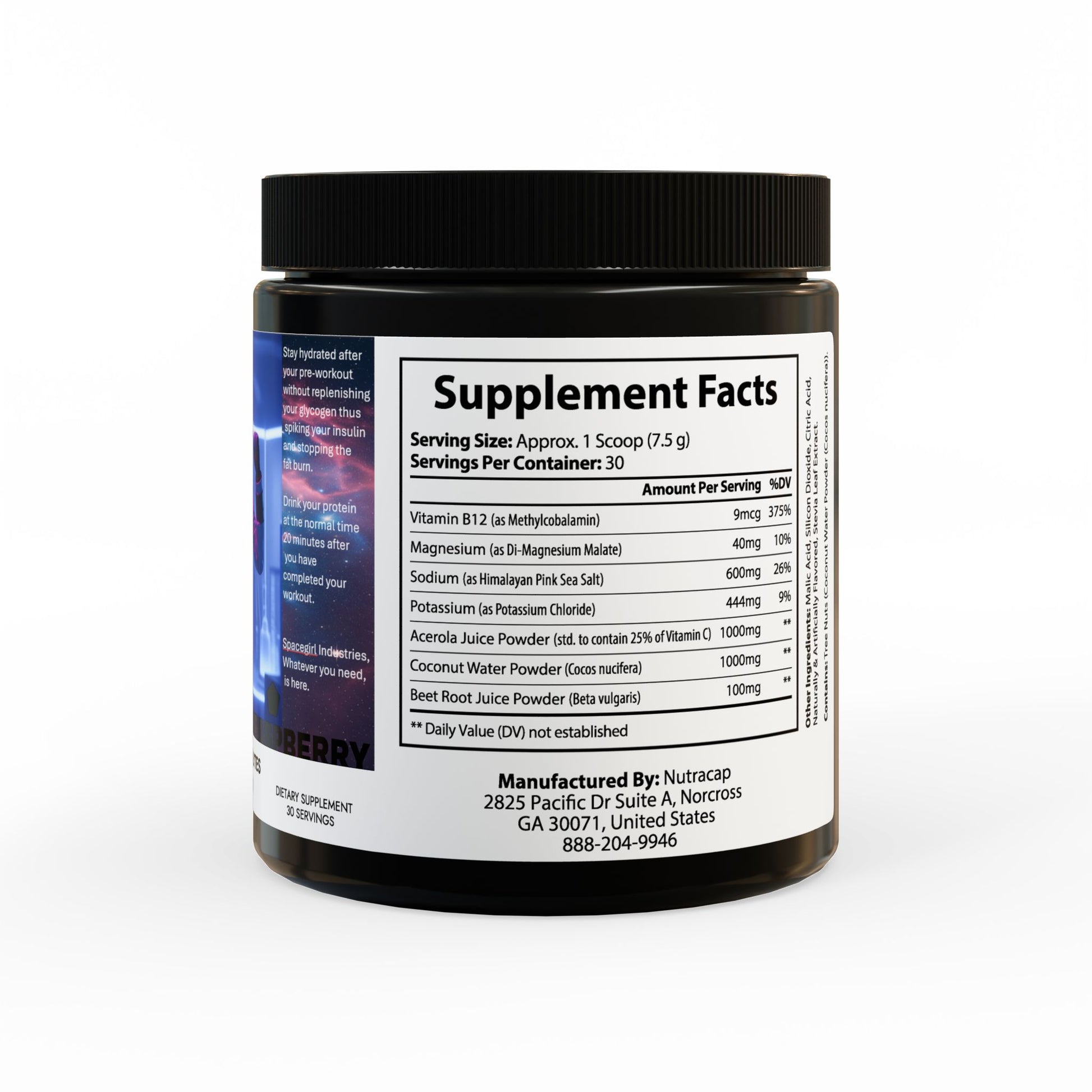 Ingredients: Vitamin B12 (as Methylcobalamin), Magnesium (as Di-Magnesium Malate), Sodium (as Himalayan Pink Sea Salt), Potassium (as Potassium Chloride), Acerola Juice Powder (std. to contain 25% of Vitamin C), Coconut Water Powder (Cocos nucifera), Beet Root Juice Powder (Beta vulgaris). Other Ingredients: Malic Acid, Silicon Dioxide, Citric Acid, Naturally & Artificially Flavored, Stevia Leaf Extract. Contains: Tree Nuts (Coconut Water Powder (Cocos nucifera)